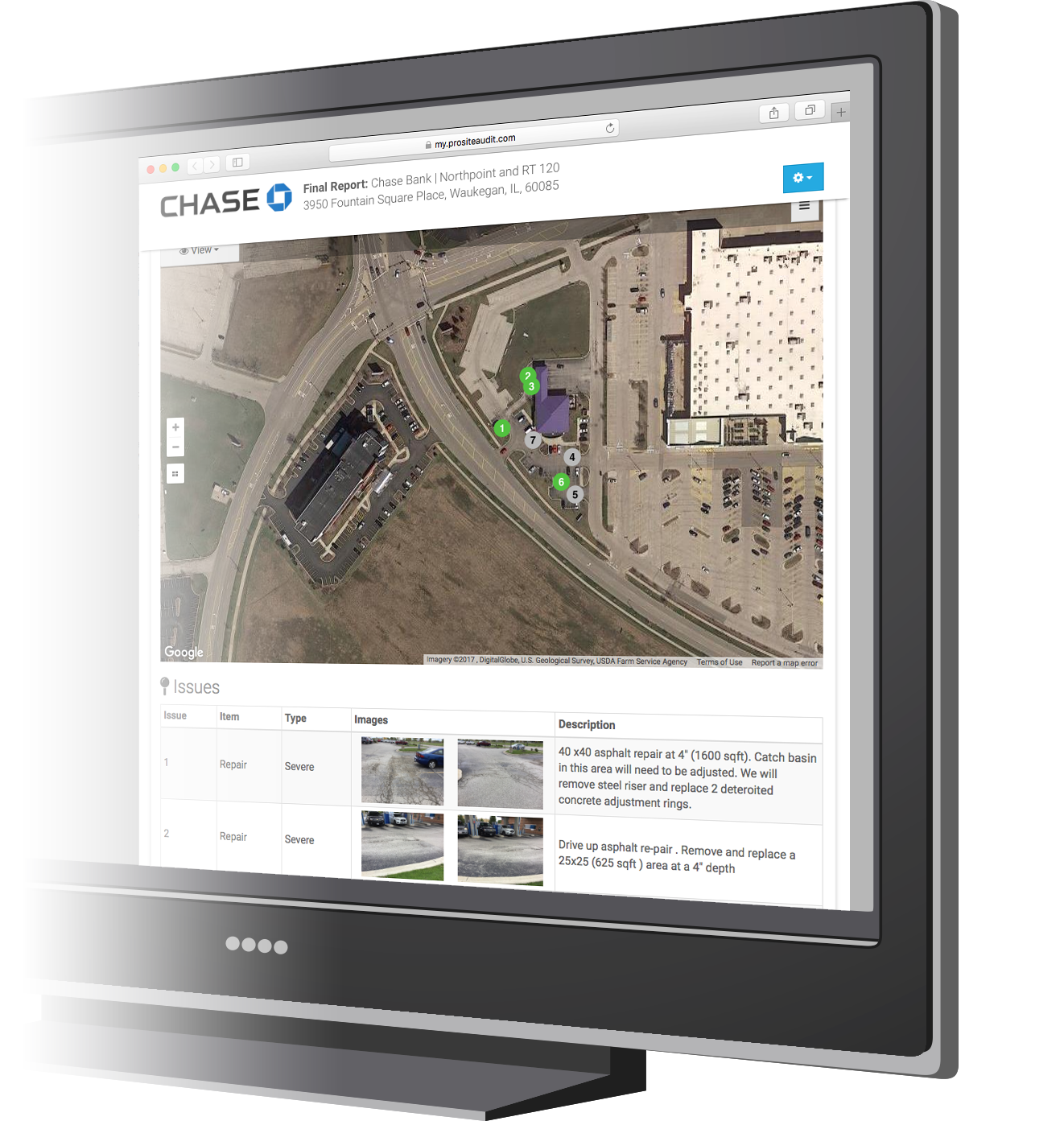ProSiteAudit provides a simple and immediate way for your on-site staff or contractors to report areas of concern before they become legal liabilities and costly repairs.